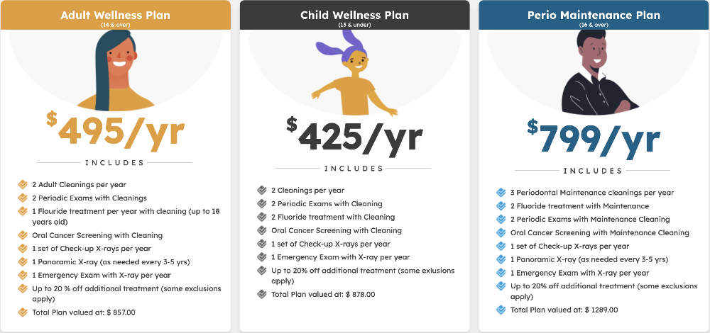 Once enrolled in our membership plan, you'll enjoy preventive dental care (checkups, cleanings, and x-rays), discounts on additional treatment, and many other benefits.